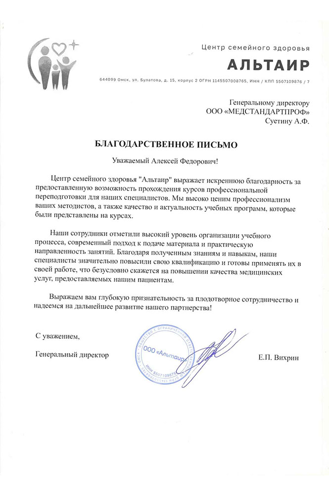 Вид дополнительного профессионального образования врачей и других специалистов. Курсы направлены на совершенствование компетенций в рамках специальности. Стандартные программы повышения квалификации в «МедСтандартПроф» рассчитаны на 36, 72 или 144 часа. После обучения специалист получает удостоверение.