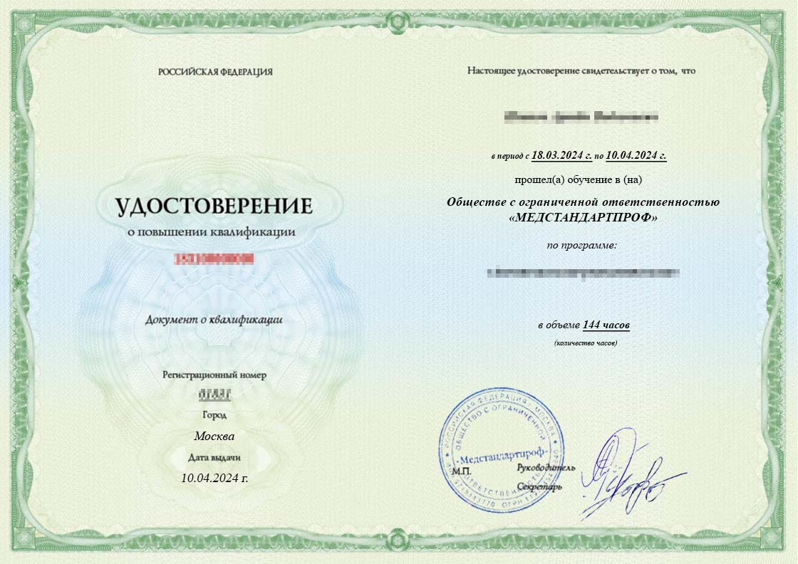 ОБЩЕСТВО С ОГРАНИЧЕННОЙ ОТВЕТСТВЕННОСТЬЮ «МЕДСТАНДАРТПРОФ» ОГРН 1197746498840 ИНН 9718143770