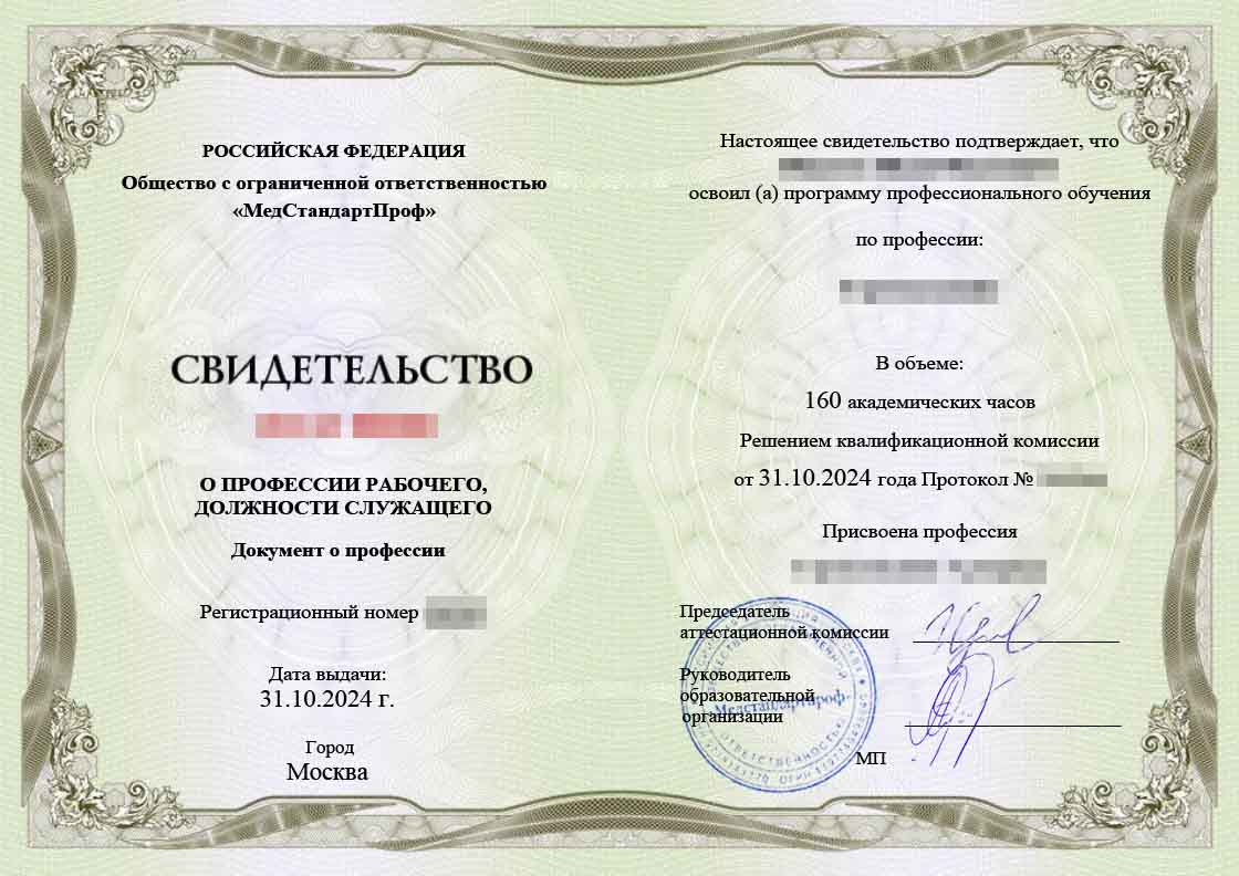 Свидетельство о присвоении профессии - Уровень образования: